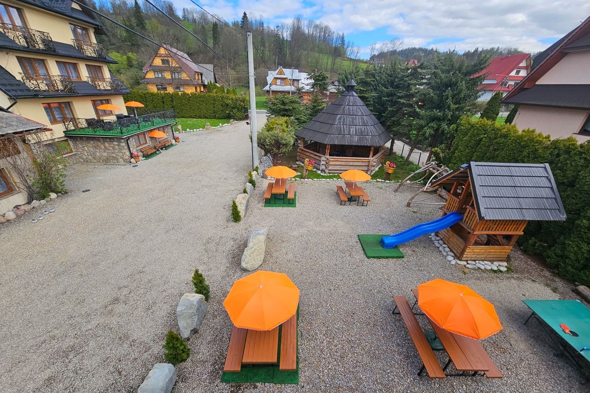 Oferujemy 80 miejsc noclegowych w pokojach częściowo z łazienkami. Polecamy wyżywienie – domowa kuchnia. Do dyspozycji gości: basen kąpielowy, boisko sportowe, plac zabaw dla dzieci, parking na terenie ogrodzonej posesji w tym parking dla autokarów, szałas grillowy w stylu góralskim na 50 osób. Organizujemy wycieczki w góry z przewodnikiem, imprezy rekreacyjne z góralską muzyką i pieczeniem prosiaka, kuligi. W pobliżu liczne szlaki turystyczne i stoki z wyciągami narciarskimi. Zapraszamy na wczasy, wycieczki, kolonie, zimowiska, zielone i białe szkoły. Wypoczynek na każdą kieszeń!